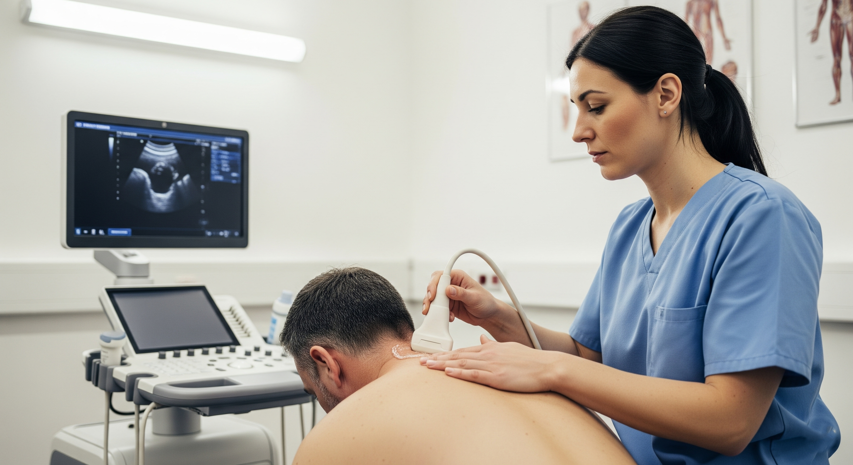 Utilizamos la ecografía musculoesquelética para visualizar en tiempo real el estado exacto de tus músculos cervicales, identificando el grado de contractura y personalizando tu tratamiento.